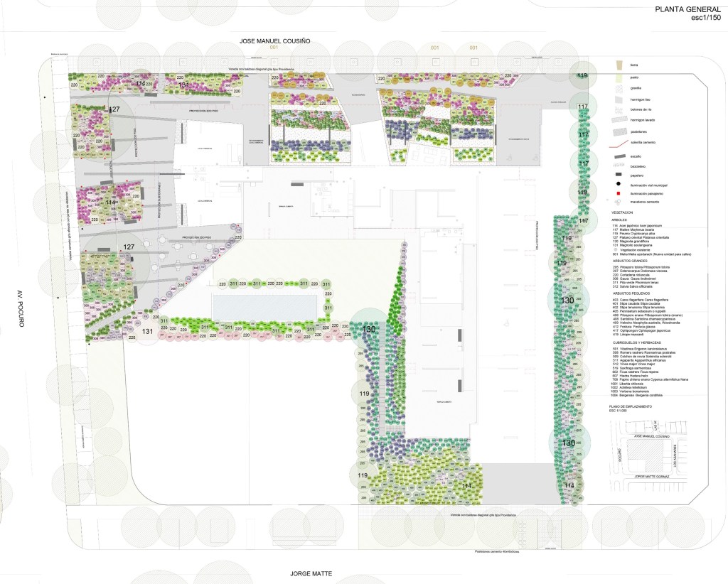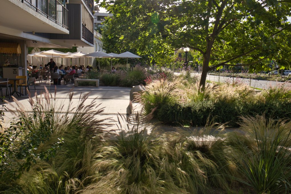 Se diseña la plaza a partir de espacios vinculados a la calle pero semi protegidos por espacios de vegetación baja que permita conexión visual entre la terraza y la calle.