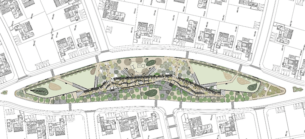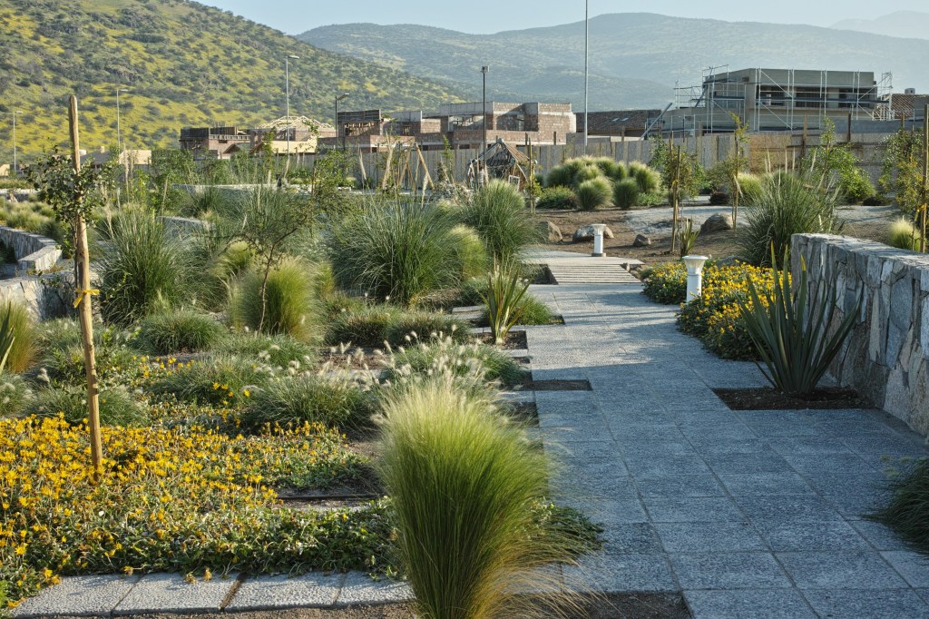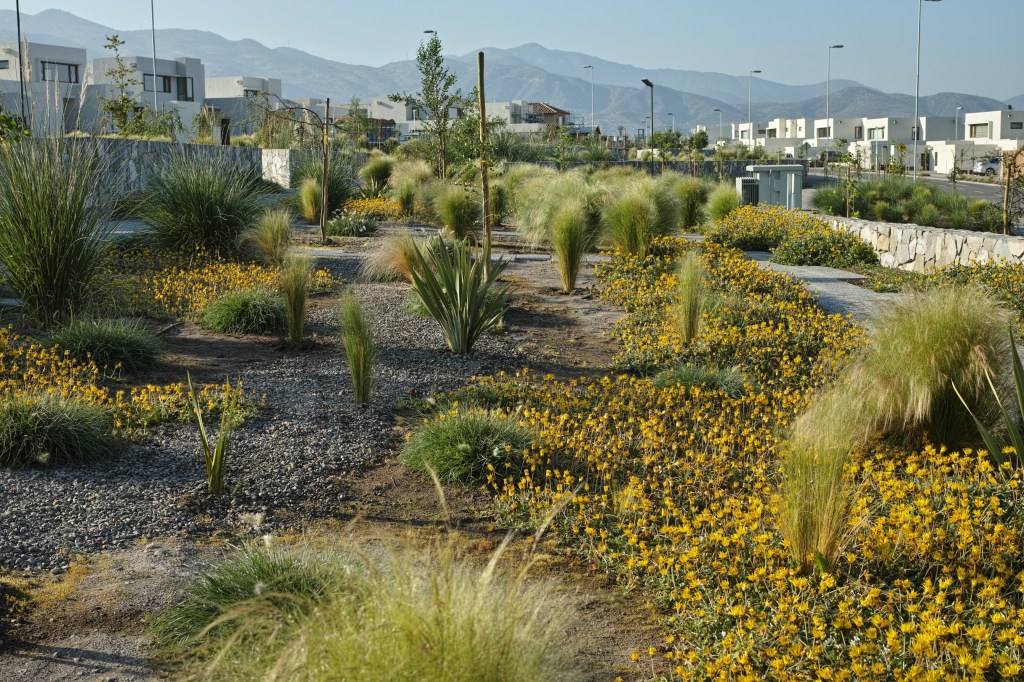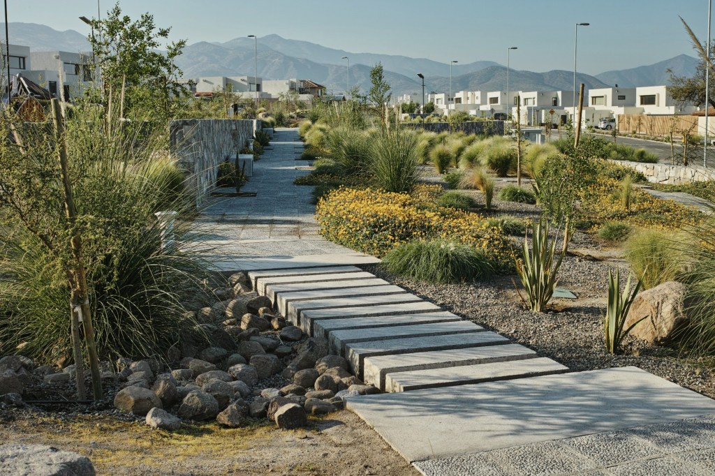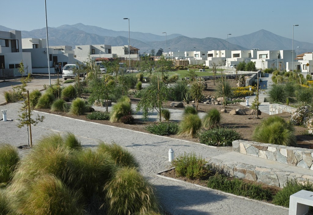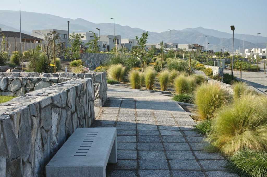 Parque privado para condominio en Piedra Roja. El terreno tiene un desnivel de 3m aproximadamente, lo que hizo necesario el uso de terrazas contenidas por muros de piedra para poder localizar los distintos programas del parque.