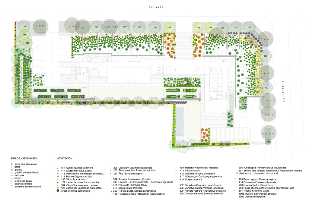 Se prescinde del uso de pasto proponiendo una paleta de bajo consumo hídrico en general.