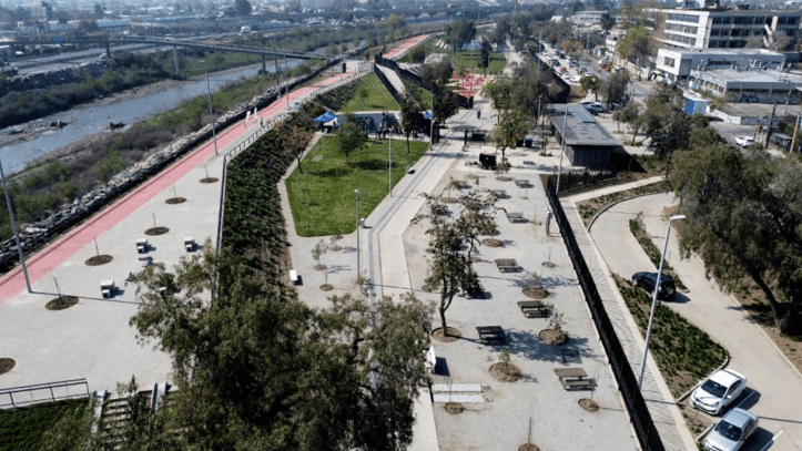 Parque publico de 9km de largo que recupera las ribera sur del rio Mapocho en el sector poniente de Santiago. La oficina se ha encargado exclusivamente del paisajismo, donde se desarrollo un proyecto de vegetación de ribera y vegetación nativa de la Zona Central de Chile, entendido como un patrimonio nacional. Tiene un fuerte componente medioambiental al propiciar la aparición de insectos benéficos y aves propias de la región.