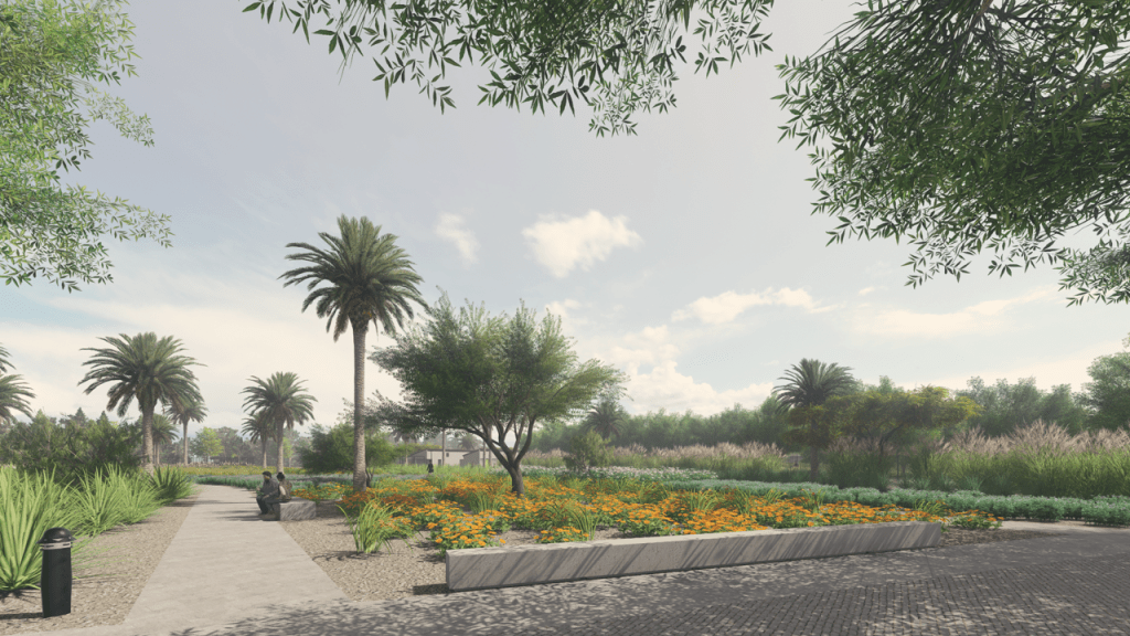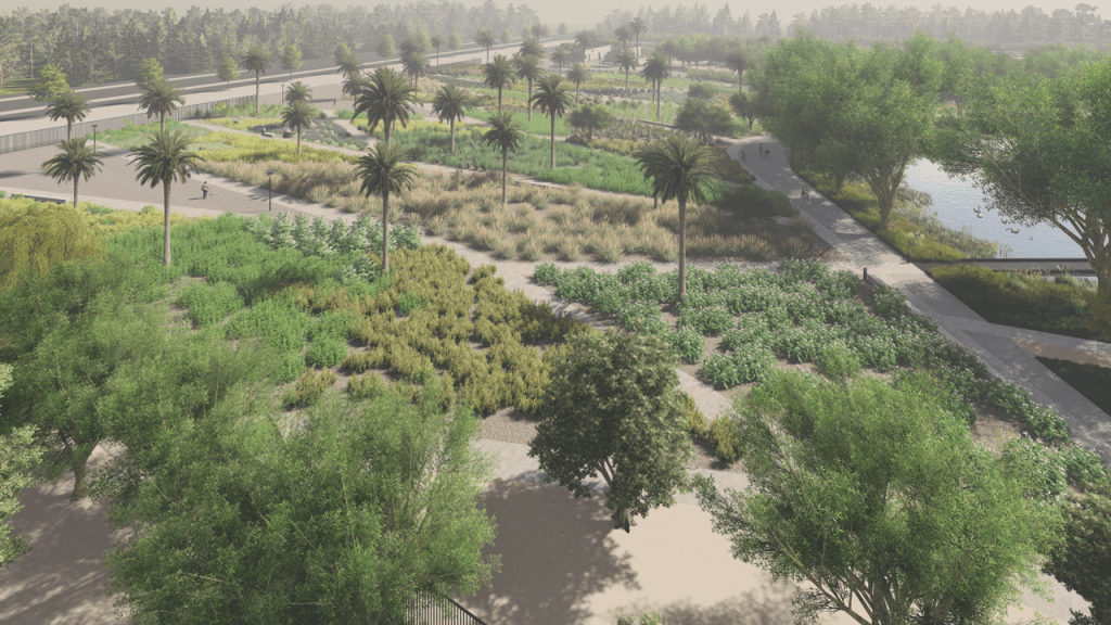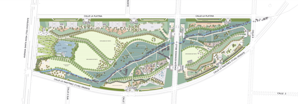 Parque publico en la comuna de la Pintana, que propone el uso de espacios silvestres como el corazón del parque. El terreno, actualmente de uso agrícola, cuenta con un canal y arboleda de gran tamaño y presencia en el paisaje.