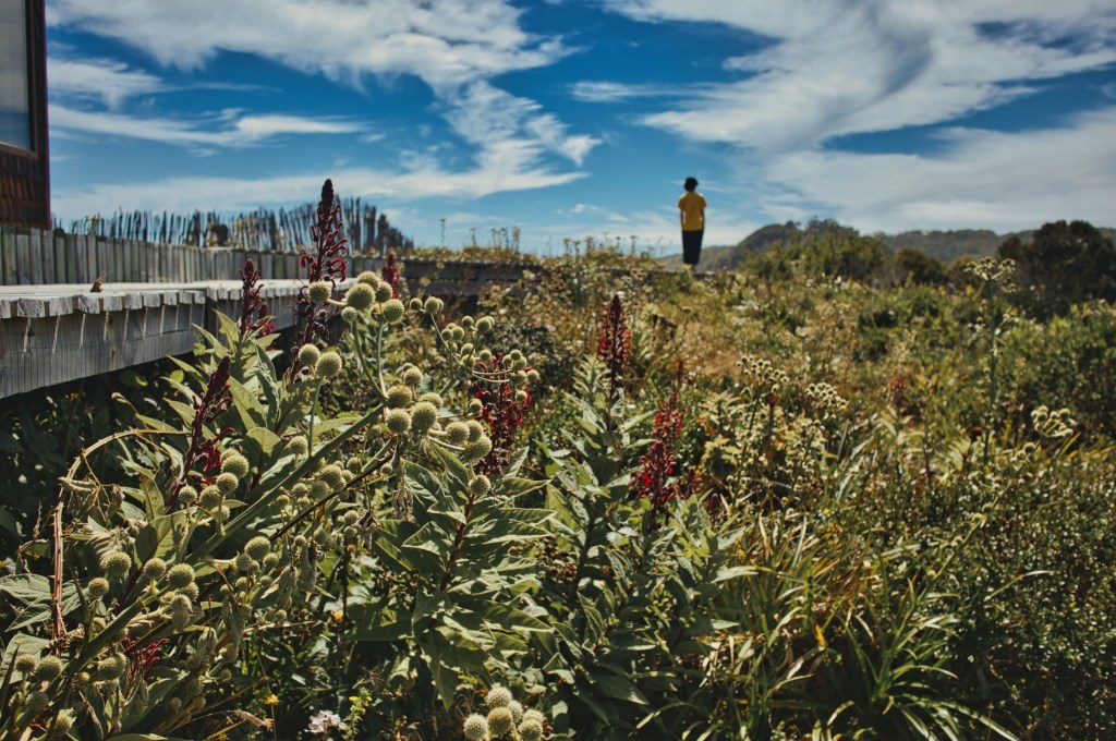 No se ha intervenido en ningún grado la vegetación local en este lugar, de manera que el pabellón se posa sobre una capa de arbustos y herbáceas nativas sin perturbarlas.