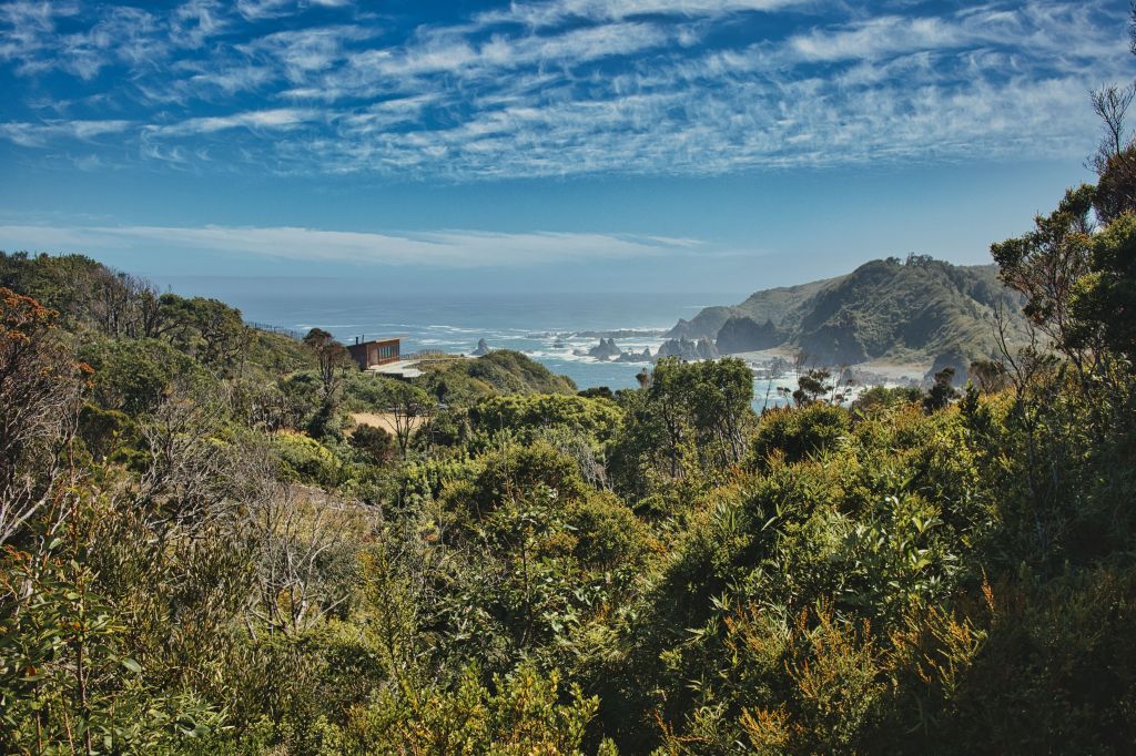 El proyecto de urbanización sobre este terreno en la costa de la Región de Los Lagos buscaba crear terrenos con buenas vistas, pero también, que el impacto de caminos fuera el menor posible dada su compleja topografía.