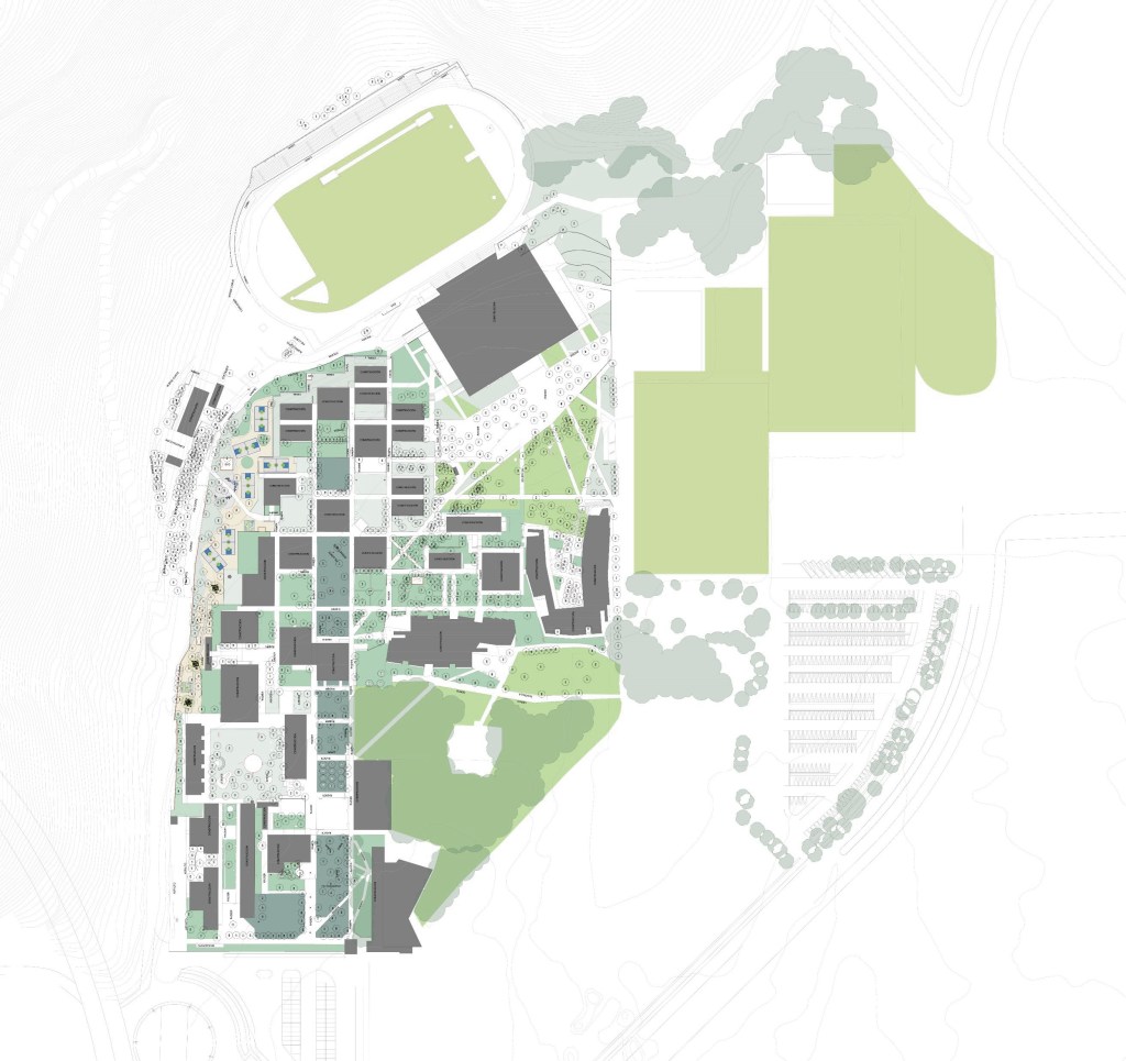 En la actualidad el colegio tiene 2,33 ha de pasto recreativo, (31% del terreno) que según lo planificado en el plan maestro podrían disminuir a 1,46 ha,(19,9%) lo cual significa un ahorro sustancial en agua para riego.